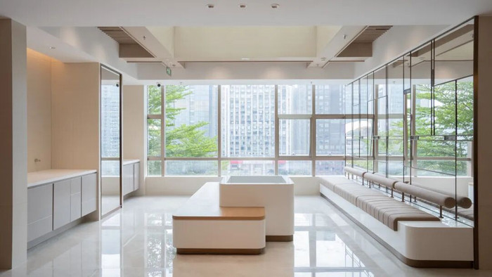 记者注意到,天河院区为儿童、老人打造适童化和适老化治疗,儿童口腔科开设在医院二楼,小朋友在牙椅上可以一边看动画片一边检查牙齿,医院还专为老年患者保留人工挂号、交费等传统模式。院区首层大堂设有服务岛、咖啡厅、院史长廊、科普园地、母婴室等人文候诊设施,六楼开放了空中花园,打造生态候诊空间,体现“高度”与“温度”的融合。
